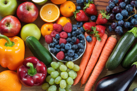 a colorful arrangement of fruits and vegetables. generative ai