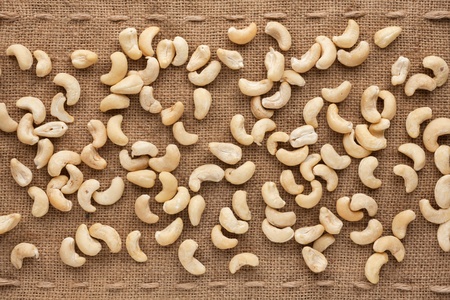 Cashews. Close up of cashew nuts background. Healthy food concept. Top view