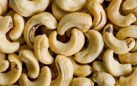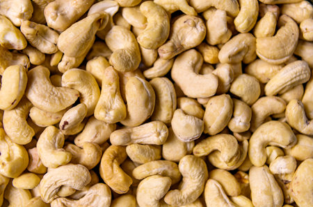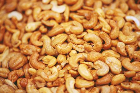 Appetizing cashew nuts close-up, pattern. Healthy food and used in vegetarian nutrition