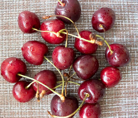 Freshly washed cherry fruits. A photo from a short distance.