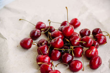 bunch of cherries on kraft paper background