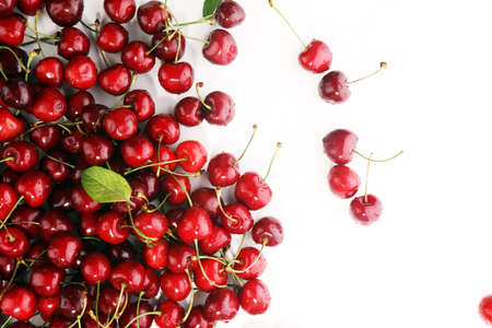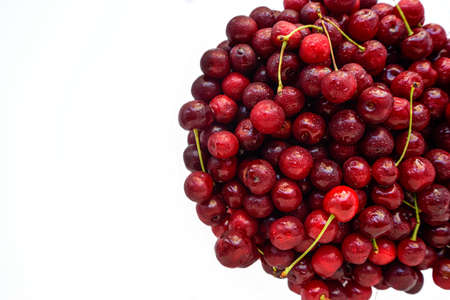 Red juicy ripe cherry on a white background. High quality photo