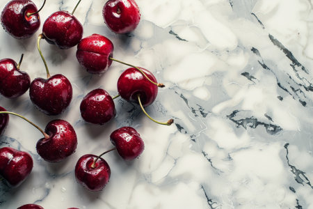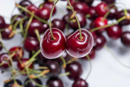Delicious ripe red cherries on a marble background