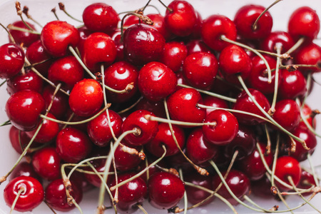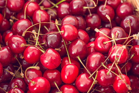 Selective focus image. A lot of fresh sweet cherry fruit berries