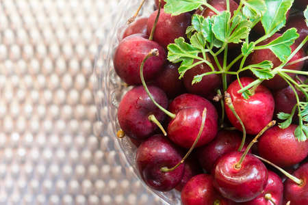 Ripe juicy cherry in a bowl on a Steel Table