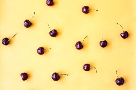 pattern from cherry on yellow bacground ,minimal concept