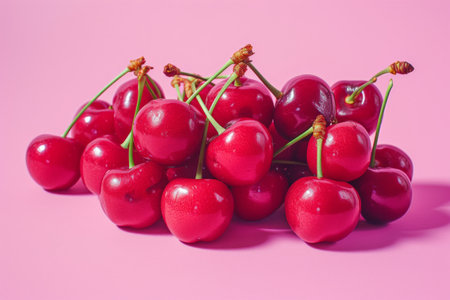 Vibrant Cherry Pattern: Flat Lay of Ripe Cherries on Pink Background