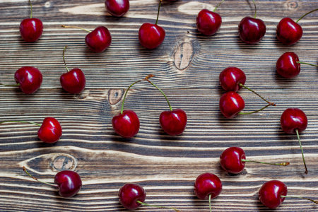 fresh cherries on wooden table