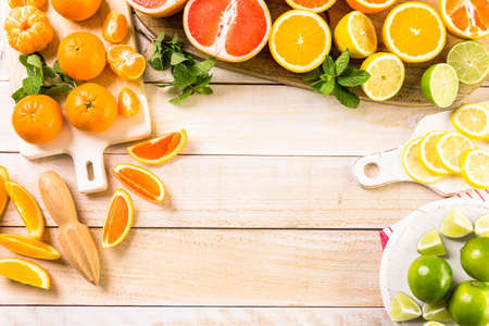 Mix of different citrus fruits closeup. Healthy diet vitamin concept. Food photography