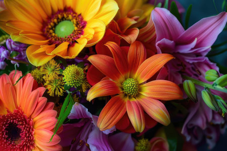 A stunning arrangement of vibrant flowers showcasing a variety of colors and textures. Perfect for decoration, events, or as a beautiful backdrop for any occasion.