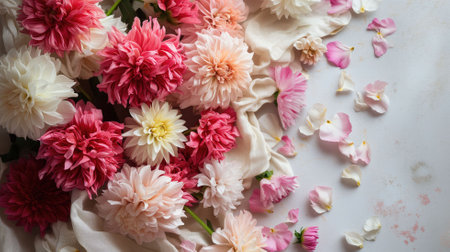 Floral Elegance Unveiled: A Serene Top-View Tapestry of Blossoming Beauty