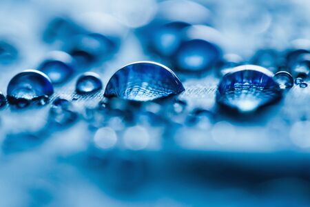 Rain Water droplets on blue waterproof fabric