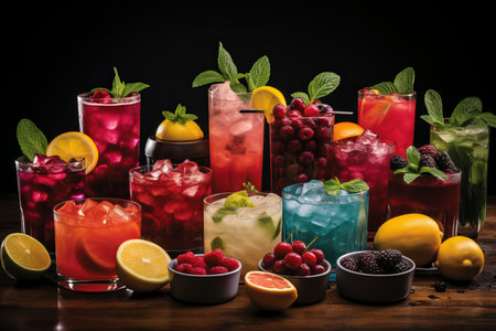 gin cocktails with fresh fruit and herbs, created with generative ai