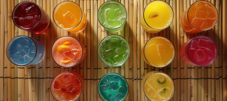 Exotic Summer Drinks Displayed on Bamboo Mat for Vibrant Design Inspiration
