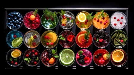 A tray of colorful drinks with different flavors, AI