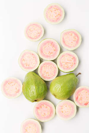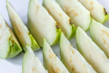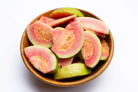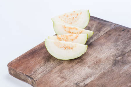 Fresh delicious guavas slices on isolated wihte background asia vietnam