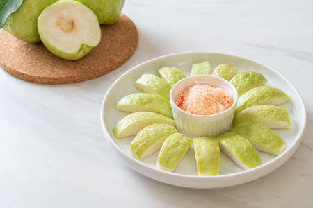 Fresh sliced guava or Jaam or peru sprinkled with a little bit salt, red chilli powder