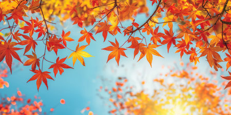 Abstract nature background, Autumn maple leaves on blue sky.