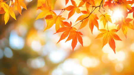 Beautiful maple leaves on the tree in autumn sunny day in Japan.