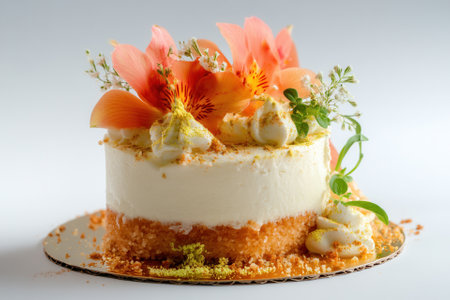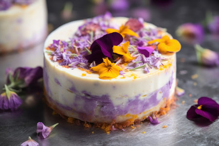 cheesecake with edible flowers as decoration, created with generative ai