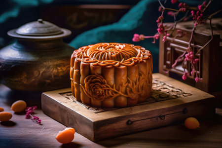 Immerse yourself in the cultural charm of mooncake, a festive Chinese delicacy passed down through generations. Indulge in the exquisite taste and embrace the joyous traditions it represents. illustration created by Generative AI
