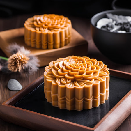 Traditional Mooncakes Display with Intricate Designs Celebrating Asia s Festive Holiday Atmosphere