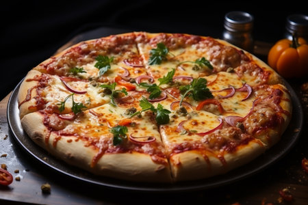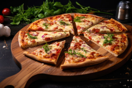 An AI generated illustration of freshly baked pizza on a tray