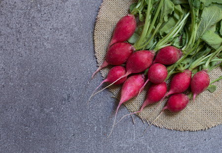 bunch of fresh radishes with place for an inscription, wholesome food rich in vitamins, seasonal vegetables