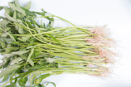 Chinese Spinach root or in Indonesia is called kangkung. white background