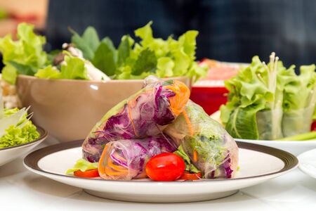 Salad roll organic vegetarian food, healthy food concept
