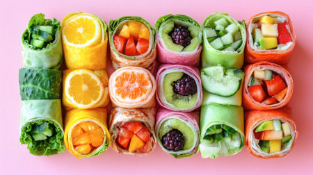 Colorful and a lot of salad rolls with full frame