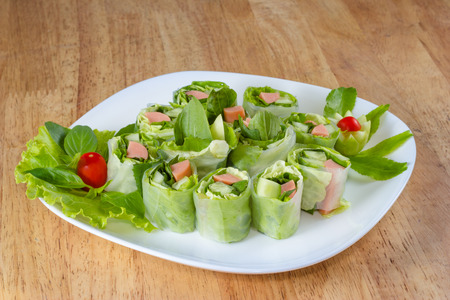 Salad roll vegetables and Organic with salad dressing