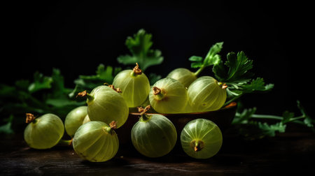 fresh organic gooseberry berries on a black background
