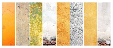 Collection of vertical or horizontal banners with textures of old stucco wall of diferent colors - grey, yellow, green and brown. Mock up template. Copy space for text