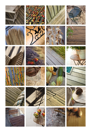 Terrace and garden furnitures on a collage