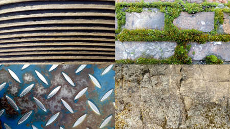 Set of different textures. Background of metal, wood, brick and stone.
