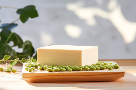 Fresh tofu with soy bean seeds, Vegan food ingredient in Asian cuisine, Plant based diet