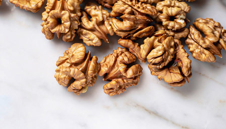 Natural walnuts in a top view, creating a wholesome background