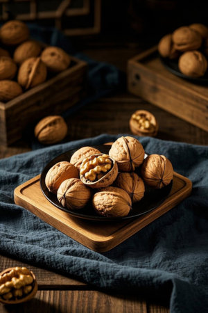 AI Generated. High resolution image of walnuts perfect for food blogs packaging and culinary websites