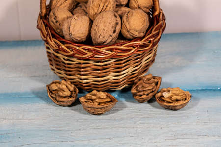 A basket full of healthy raw walnuts. High quality photo
