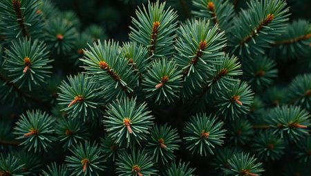 Fresh pine tree needles background with dense layers creating a forest like texture