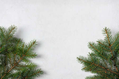 Christmas fir tree background with copy space. Fir tree branches texture. New year Background.
