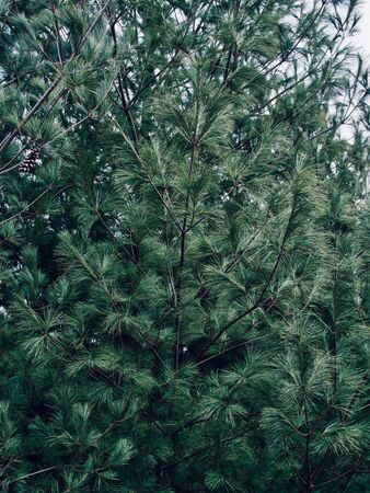 Beautiful green pine tree texture. Art design decor for holiday background. Nature scenic backdrop
