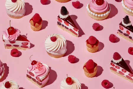 Cupcakes with butter cream on a pink background. Pattern for menu design, cafe decoration, delivery box, tshirt, fabric, textile