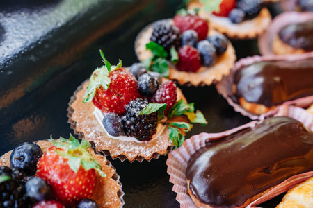 assorted cakes for the holiday. candy bar. sweet birthday treats.