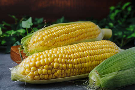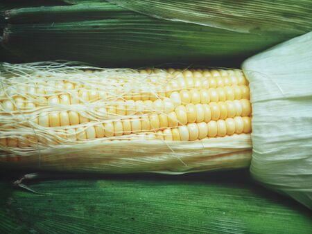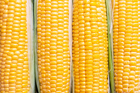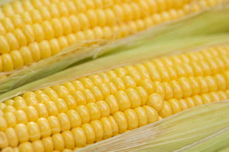 fresh sweet organic corn cobs close-up background