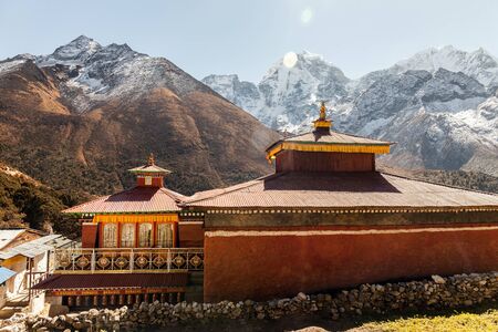 Everest base camp trekking. high mountains Nepal. gate to a nepalese monastery