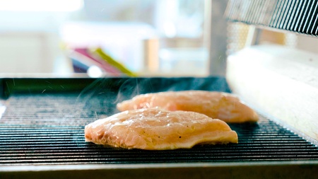 Chicken breast being prepared on grill