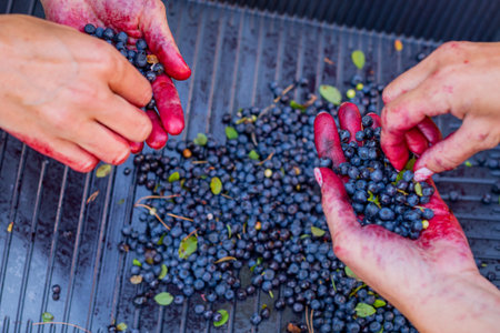Close-up of fresh MencÃa grape bunches, ideal for winemaking.