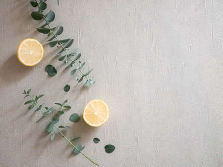 Lemon and citrus fruits and eucalyptus leaves. Relaxing aromas.